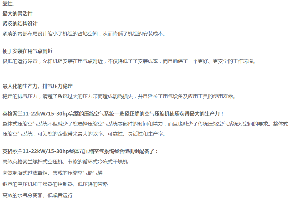 •        濟(jì)南銳博特機(jī)械設(shè)備有限公司是英格索蘭空氣壓縮機(jī)的授權(quán)代理商,代理銷(xiāo)售美國(guó)英格索蘭全系列的空壓機(jī)及后續(xù)處理設(shè)備。公司自成立以來(lái),經(jīng)過(guò)公司全體同仁不斷努力,開(kāi)拓創(chuàng)新,以?xún)?yōu)良的技術(shù)、完善的售后服務(wù),使得公司贏得了一個(gè)又一個(gè)的誠(chéng)心客戶(hù)。我公司擁有多名專(zhuān)業(yè)的銷(xiāo)售及售后服務(wù)人員,為客戶(hù)提供空壓系統(tǒng)的售前、售中及售后的全方位優(yōu)質(zhì)服務(wù)。另公司有多名具有英格索蘭壓縮機(jī)授權(quán)服務(wù)證書(shū)的服務(wù)工程師,能維修和保養(yǎng)國(guó)內(nèi)外各種品牌空壓機(jī),公司各種國(guó)內(nèi)外品牌空壓機(jī)配件庫(kù)存齊全。